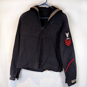 Vintage US Navy uniform is not marked but feels like navy colored wool.