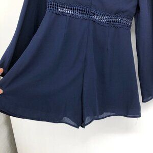 WYLDR Navy Hope So Romper diamond cutout long bell sleeves size small