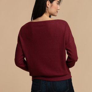 A waffle knit adds soft texture to this boat neck top featuring a banded bottom and easygoing silhouette. Very lightweight and seriously soft, this comfy top - available in pretty colours - will be in your regular off-duty rotation.