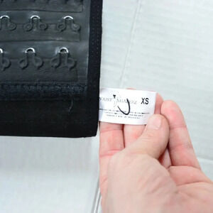 Three rows of eye and hook latch (like a bra) closures on the back.