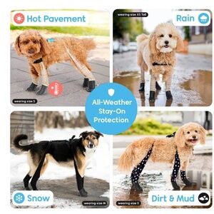 100% WATERPROOF TPE DELUXE DOG BOOTS ➞flexible, durable, thin for ground feel, and cotton-lined for comfort.