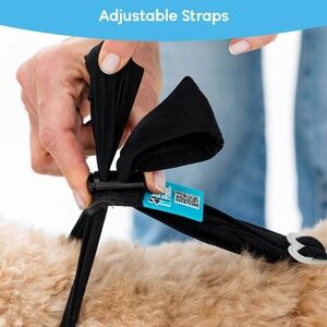 EASY ON ➞slide leggings over the back, insert legs, and paws slip into booties—far simpler than individual boots.