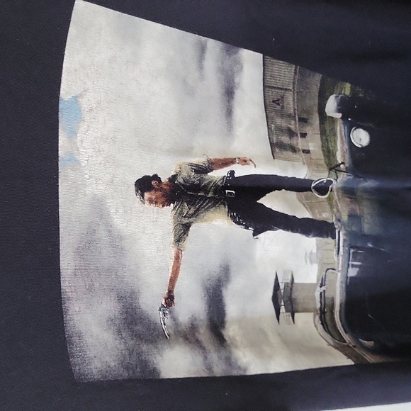 Men's size M Walking Dead t-shirt. This is a black top that features a photo of Rick Grimes. 100% pre shrunk cotton.