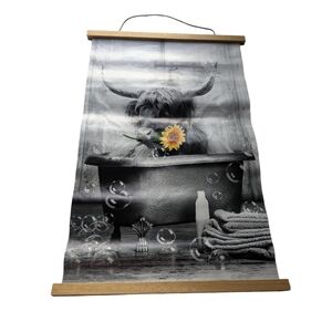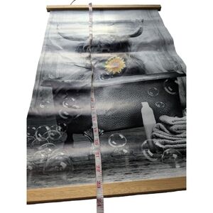 Cow in Bathtub Wall Art. Black and White. #bathroomdecor #cowinbathtubwallart #blackandwhiteartwork #homedecor #cattlepicture #animaldecor