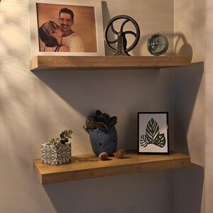 Give your walls a stylish upgrade with these 24" floating shelves. Perfect for showing off plants, photos, or collectibles, they add charm and function to any space. Can hold up to 22lbs. Don’t wait—your walls deserve a glow-up!