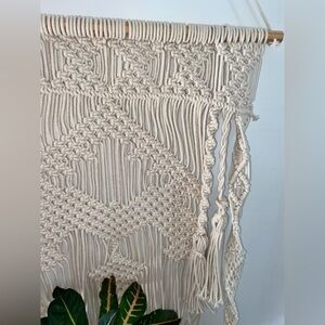 Wall Mounted Floating wood Shelf Large cream boho Macrame Tapestry hand-woven