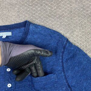 Wallace & Barnes Henley Shirt Men's Large Blue Indigo Long Sleeve J.CREW