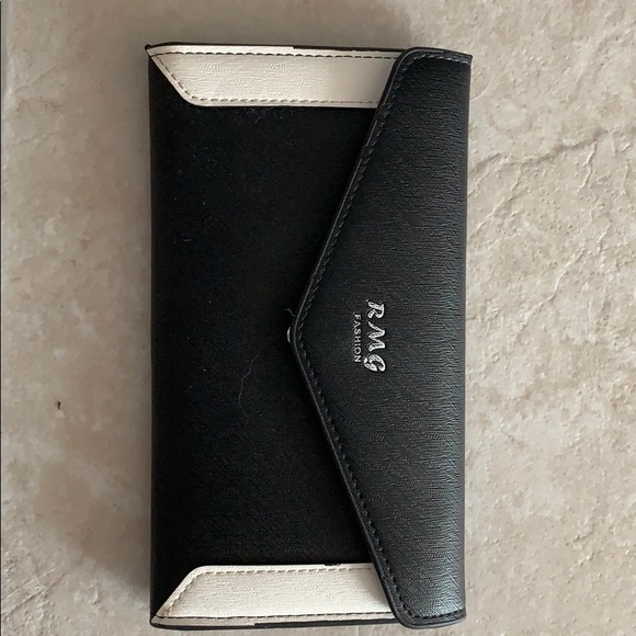 Black wallet with white frame, well designed and spackous, several usedul compartments, new condition, barely ever used.