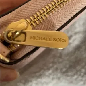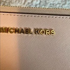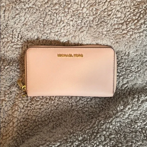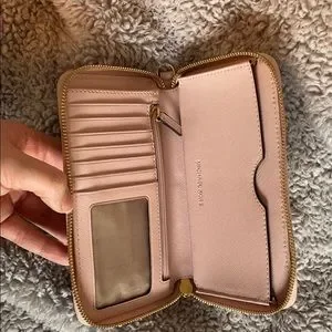 Pretty in pink. Michael Kors wallet with gold coloured detailing.