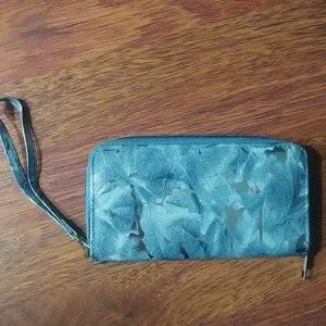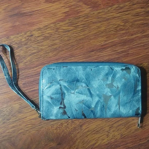 grey/blue marble patterned wallet with silver metallic accents