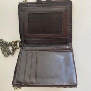 Nice wallet with lots of slots for cards, a place for cash and change and a nice removable chain with clips.