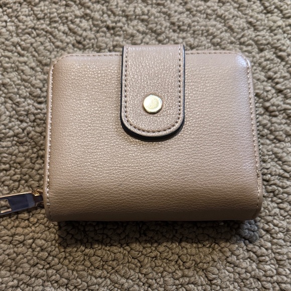 Stylish taupe women's wallet with secure snap closure. Crafted from textured material for everyday durability. Multiple inner pockets keep cards and cash organized. Neutral taupe complements any outfit.