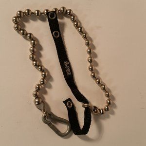 alrighty, got some measurements for you - the chain itself is 20inches, with the carabiner included it's 22inches, and then black strap when snapped together is 5inches (so of course 10inches end to end)