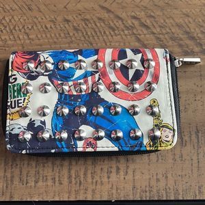 Wallet - Marvel - Captain America Studded Zip Around New Licensed gw13axmvl multi-colored. Captain America Studded Zip Around Wallet has a very vintage styled image of Marvel's Super Soldier plus some very 'Dark Ages' additions!