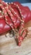 New. Pinkish red in color. Iconic leather and gold hardware strap. switch oval end. Easy add on attachments to any bags or wallets.