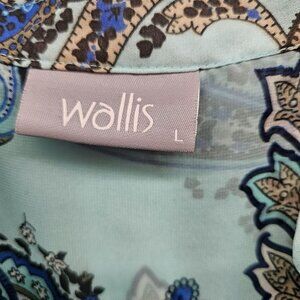Wallis Blue, Beige, Brown, Off-white ColoredPaisley Sheer Blouse Size L