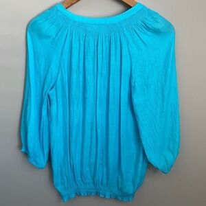 Wallis Women's Aqua 3/4 Sleeve V-neck Blouse Size Small