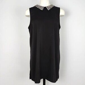 Wallis Women's Black Sleeveless Tunic Top Beaded Collar Applique Slits Size 10