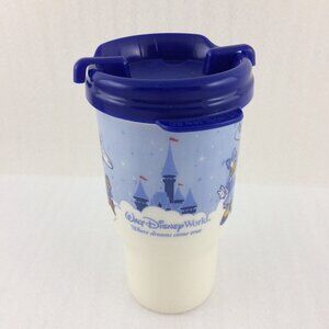 Walt Disney World Blue Coffee Mug Travel Cup w Lid Coca Cola Mickey Minnie 2007
