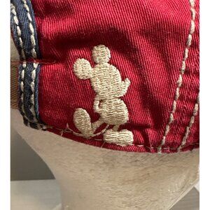 Minor wear on fabric, slight fading, and fraying near edges. Back Mickey stitching intact. Measurements: Adjustable to fit various sizes.
