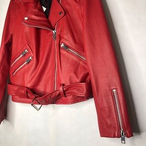 Walter Baker Allison Leather Moto Red Jacket - Size Medium