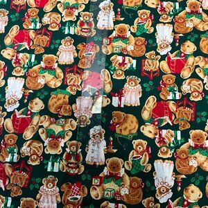 Wamsutta Hallmark Christmas Holiday Scattered Toss Teddy Bear Fabric Green 2 yd