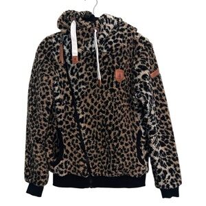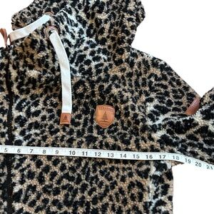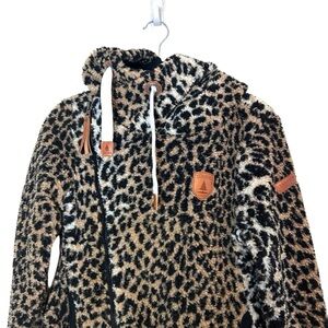 Wanakome Bliss Sherpa Leopard Print Hoodie- Cowl Neck Full Zip Hoodie- Size XS