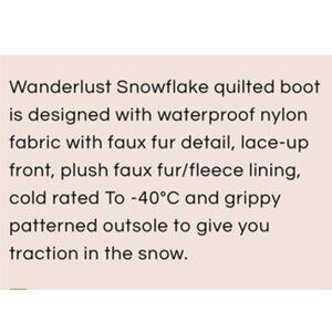 Wanderlust Snowflake Shorty Waterproof Ankle Boots Sz 9