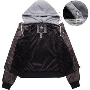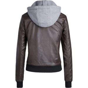 Wantdo Women Dark Brown Motorcycle Short Faux Leather Jacket with Removable Hood