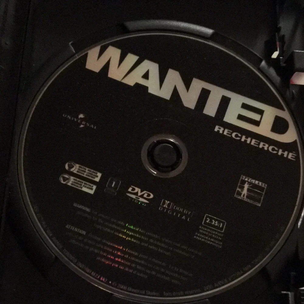 Universal Pictures DVD of the movie 'Wanted'. Features a sleek black design.