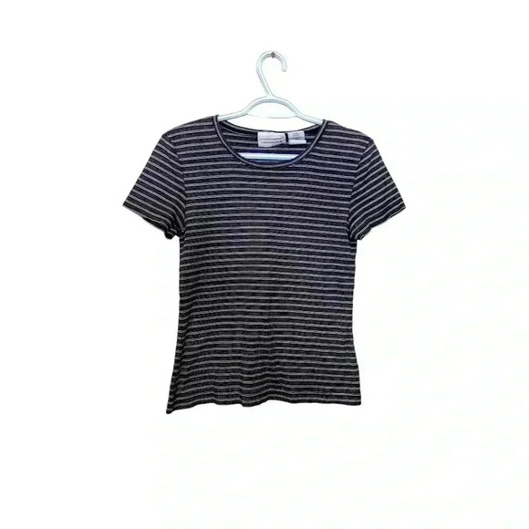 This T-shirt is an excellent used condition. Made from a soft cotton, it has cap sleeves and an overall attractive appearance.