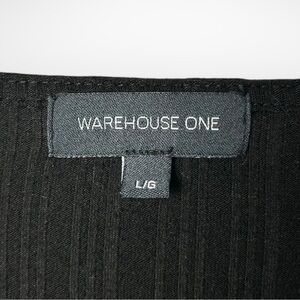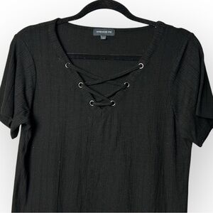 Warehouse One Black Lace Up V Neck Tee L