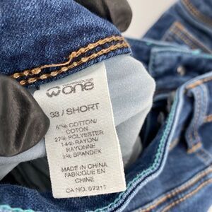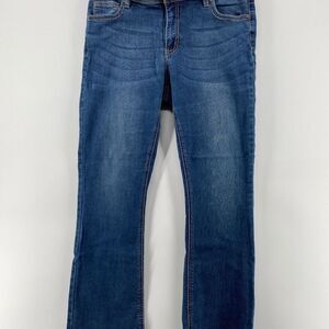 Warehouse One Jeans Women's 33 Short Curvy Bootcut Denim 5 Pocket Blue Whiskered