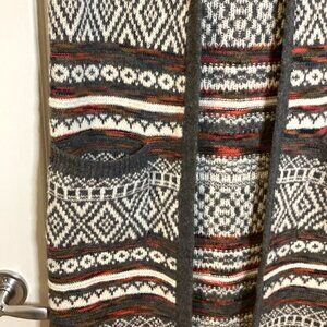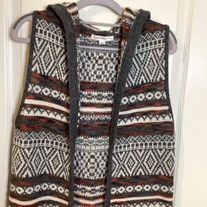 Warehouse One Women's Long Hooded Sleeveless Knit Vest Size S/P Open Cardigan