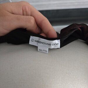 Warehouse One XXL Black Red Metallic Sparkle Ruched V-Neck Party Top