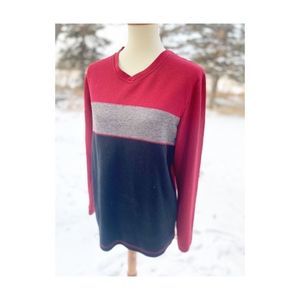 Warehouse One V-Neck Knit Sweater Red Black Grey Sz M