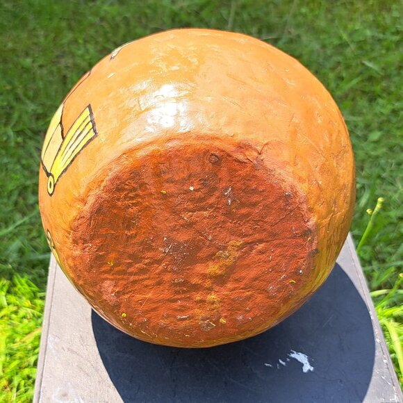 An unusual find, a "face-neck" bottle, a reproduction of Wari/Huari ceramic jars. The jar's neck is the face of a Wari lord or warrior while the body has the arms and feet along with a robe that is decorated with heads of some animal. There is wear around the neck.