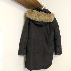 This black down jacket is incredibly warm, I don't have to layer with any sweaters when I wear it. Very cozy, slightly oversized, big fur hood. Open to best offer.