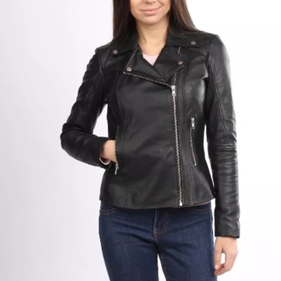 A warm decent jacket for womens with dashing bossy looks pure leather