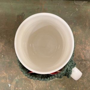Get extra cozy with this dark green sweater mug! features removable knit sweater detail.