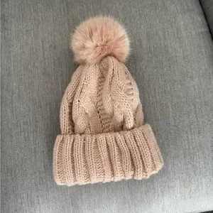 Blush coloured hat. Cute pom pom
