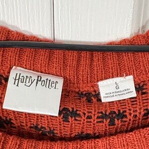 Cozy sweater with Harry Potter theme. Features red and black knit pattern.
