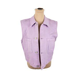 Warp + Weft Light Pastel Purple Pink Denim Button Up Vest Sz M