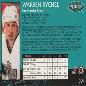 Warren Rychel (LA Kings) 1993 Parkhurst Pro Set NHL Hockey Card - Number 309