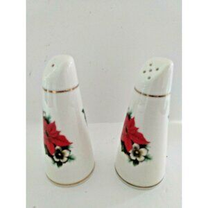 Warwick England Fine Bone China Salt & Pepper Shakers - Pointsettia Pattern