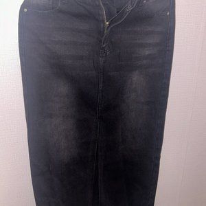 Slit in the front. Maxi up to knee length. Faded black. No stretch. Very good condition