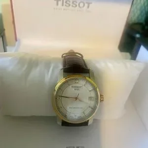 Never worn Original Tissot watch in Box. Works fine. Was a gift I have been keeping since years but since I have other favourite watches I think it’s better to find it another owner. Leather strap 2 tone watch.