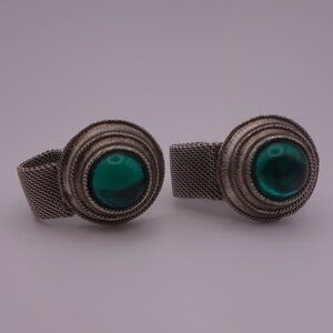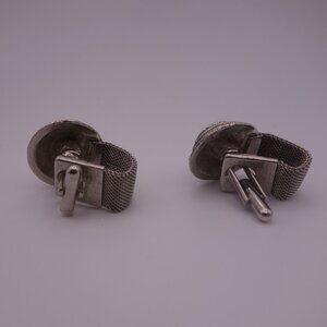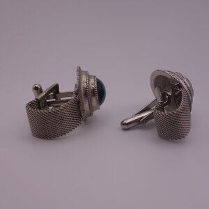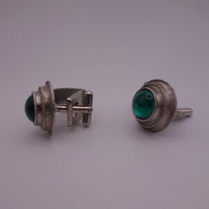 Watch Band Style Circular Green Stone Cuff Links