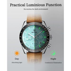 UNIQUE ELEGANT DESIGN:This is a stylish and classic design man watch. 45MM beautiful and exquisite big face with three functional subdials and date display, tachymeter numerals on the bezel, with a fashion leather strap, Quality quartz analog movement and Long-life battery, provide precise time and perfectly match any of your outfits, Benyar analog wrist watch embodies the pursuit of fashion and quality that redefines time!