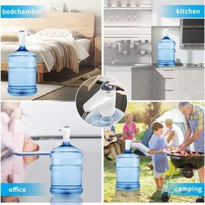 Water Jug Dispenser. USB Rechargeable: This water dispenser can be used to pump out 4-6 water jugs after a full charge, Wide Usage: Portable device for both indoor and outdoor use like office, home, Kitchen, camping, picnic, activities, etc, Safe Material: BPA free, Food grade silicone hose, high density ABS plastic shell, Fits All Standard Size Bottle: This water pump fits for 2.16 Inch (5.5cm) neck size 2, 3, 4, 5 gallon and other standard size water bottle, Quantitative: There is a 600ml button to pump a cup of water or press the other button to start and stop dispensing water.